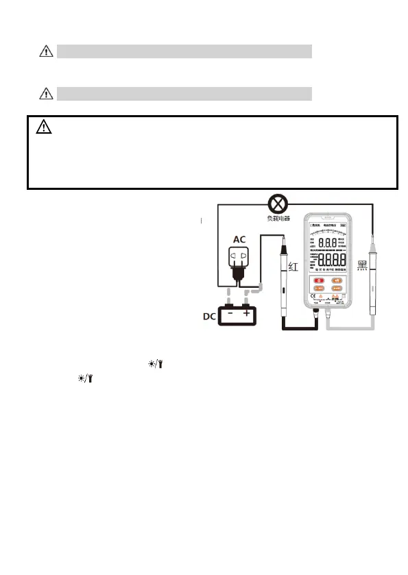 警告:判定火线时,只能一只表笔插在仪表上,否则可能有触电危险!