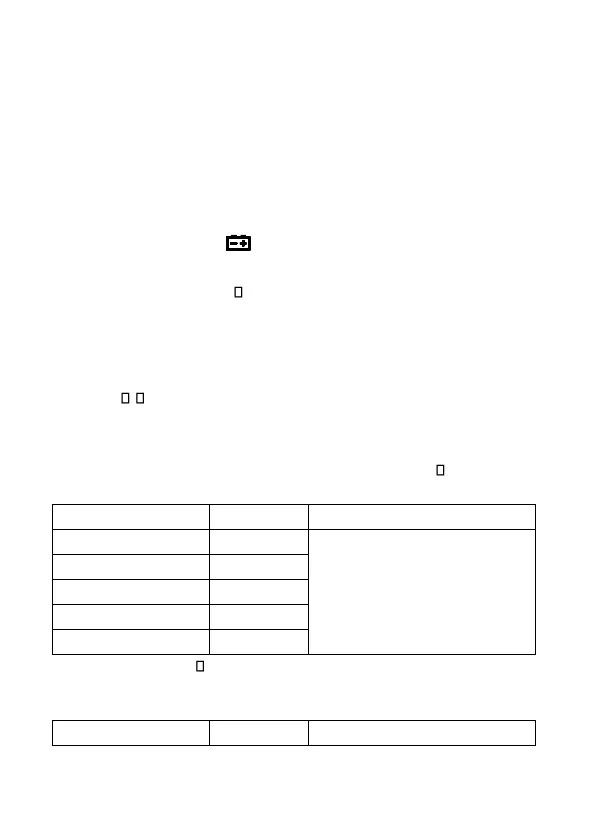 ⚫ Battery Low indication: “ ” will appear when the battery's voltage is