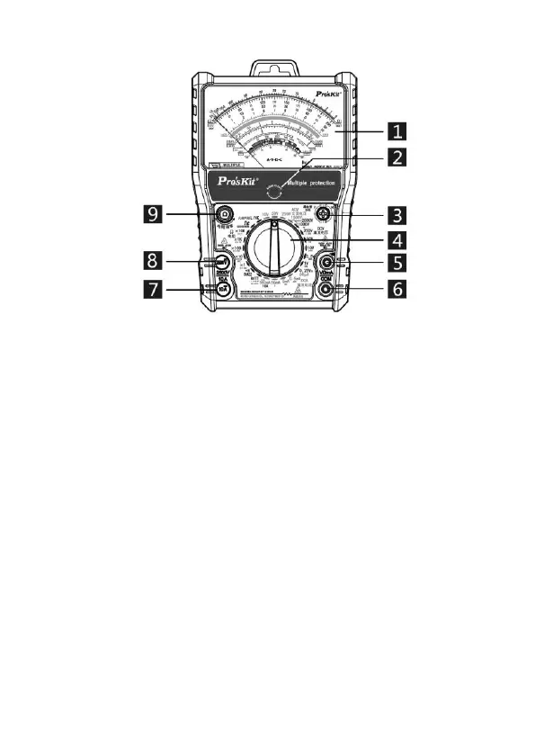 1.表盘 2.指针归零 3.hFE 测试插座 4.档位旋转开关
