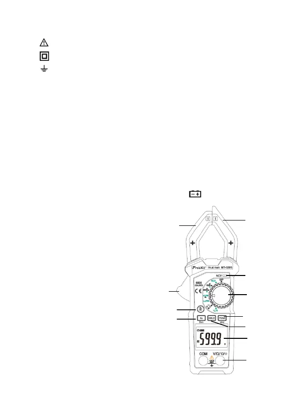 儀錶錶體及使用說明書中使用的符號: