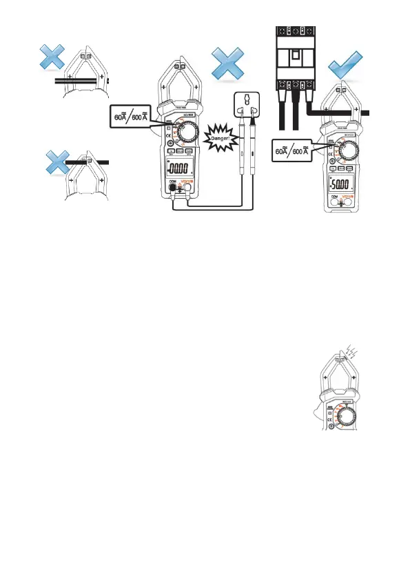 Clamp two lines of the measured circuit or more at the same time will not obtain