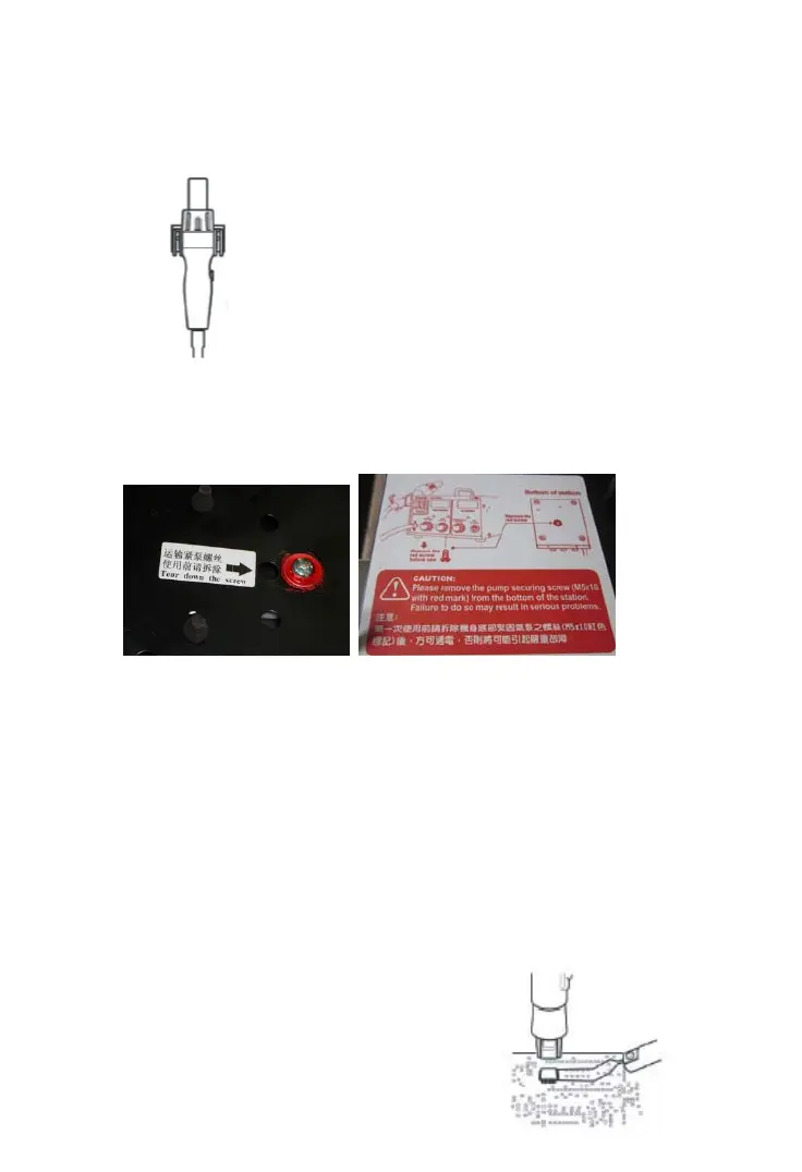 ●Loosen the pump securing screw which on the bottom of control station.