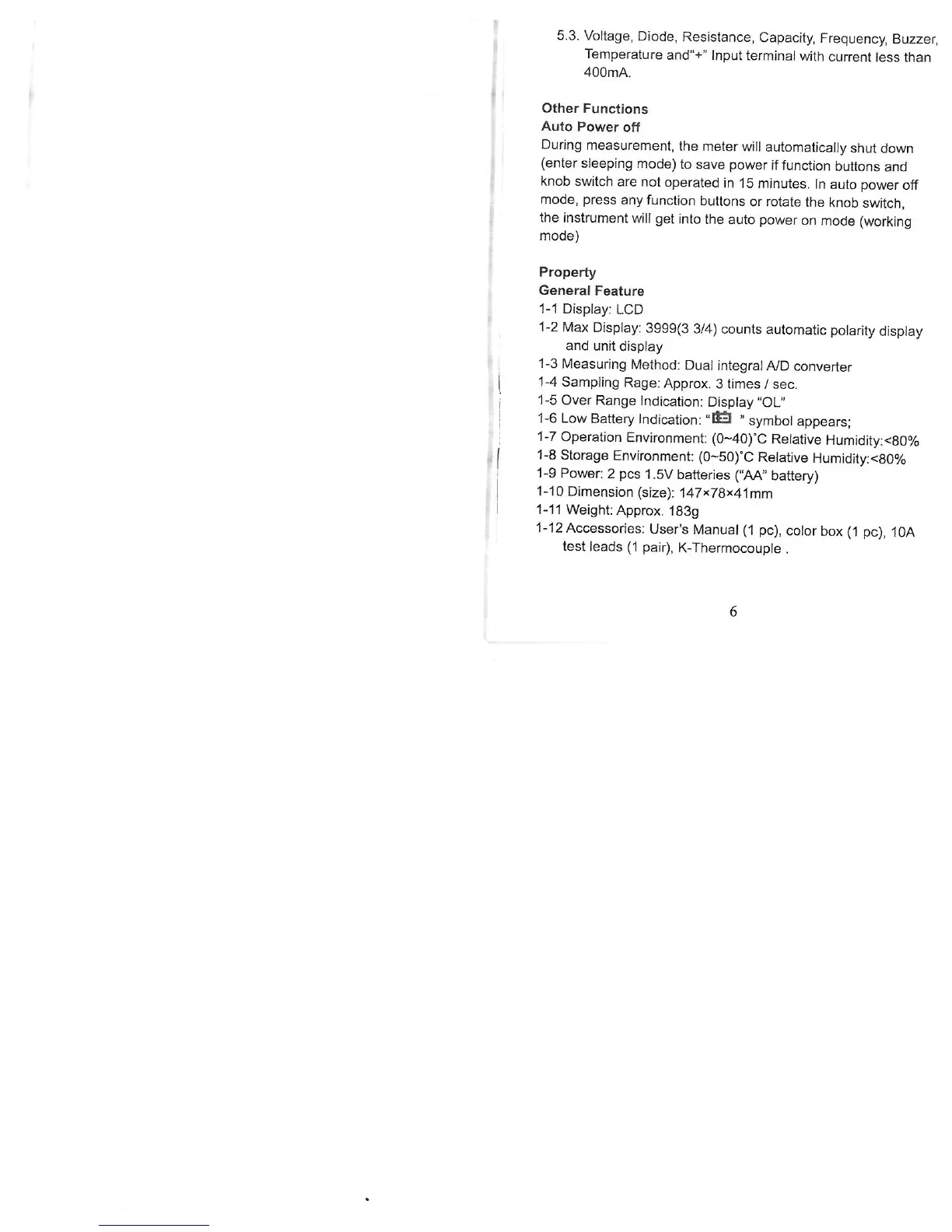 Pro'sKit MT-1232 - Other Functions; Technical Specifications; General Features