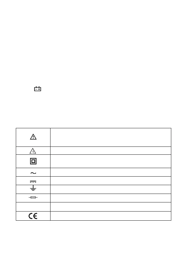 The safety symbols that appear on the meter's body and in this Operation Manual: