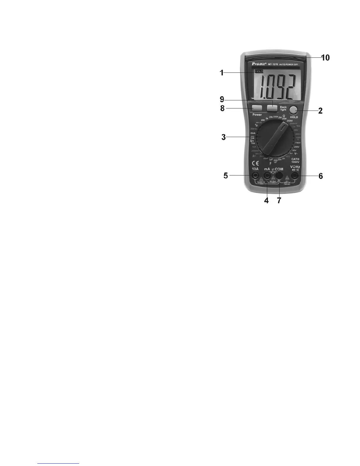 1. LCD: Display the measuring