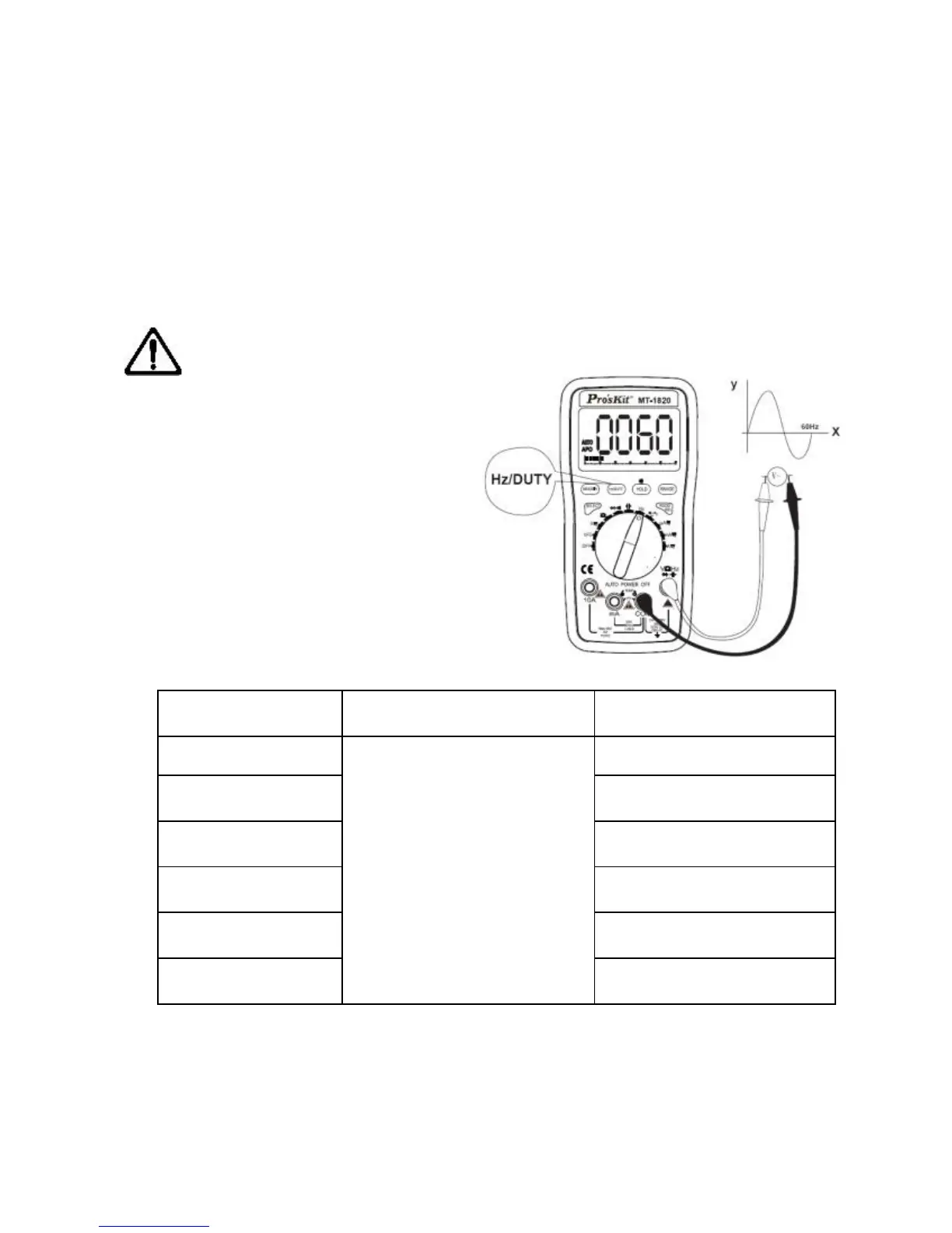 4. When measuring AC current or voltage, press “Hz/DUTY” button
