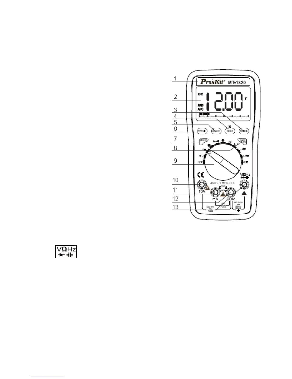 13. 輸入插孔:測量電壓、頻率/占空比、電阻、電容、二極