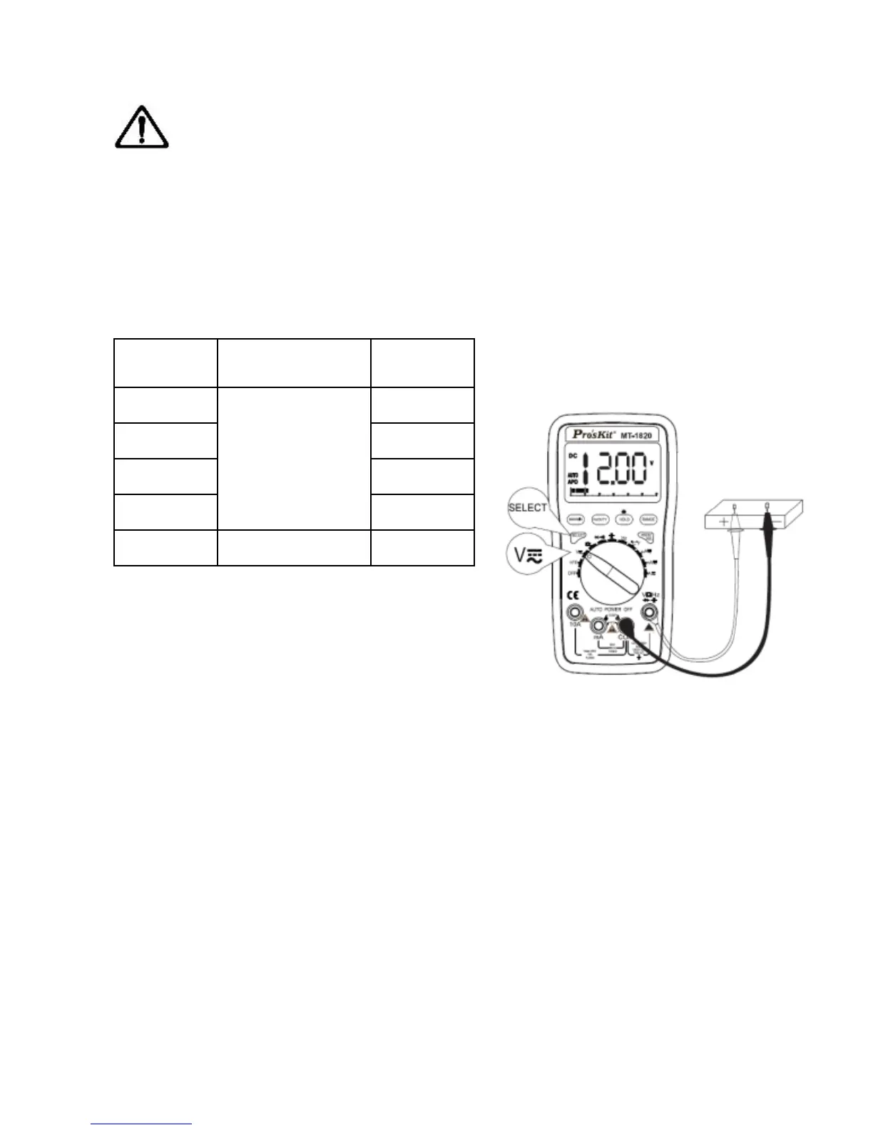 2.儀錶的起始狀態為直流電壓模式,按”SELECT”鍵可切換為交流電