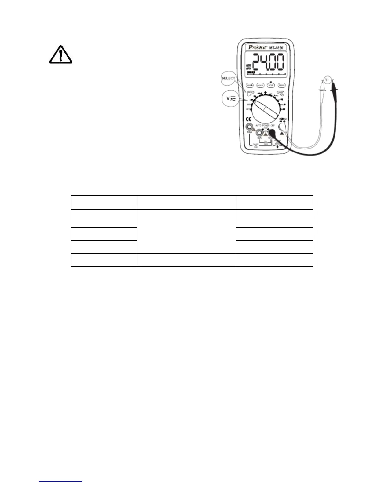 2.將功能/量程開關轉至所需電流檔,LCD 顯示“AUTO”符號,初始值