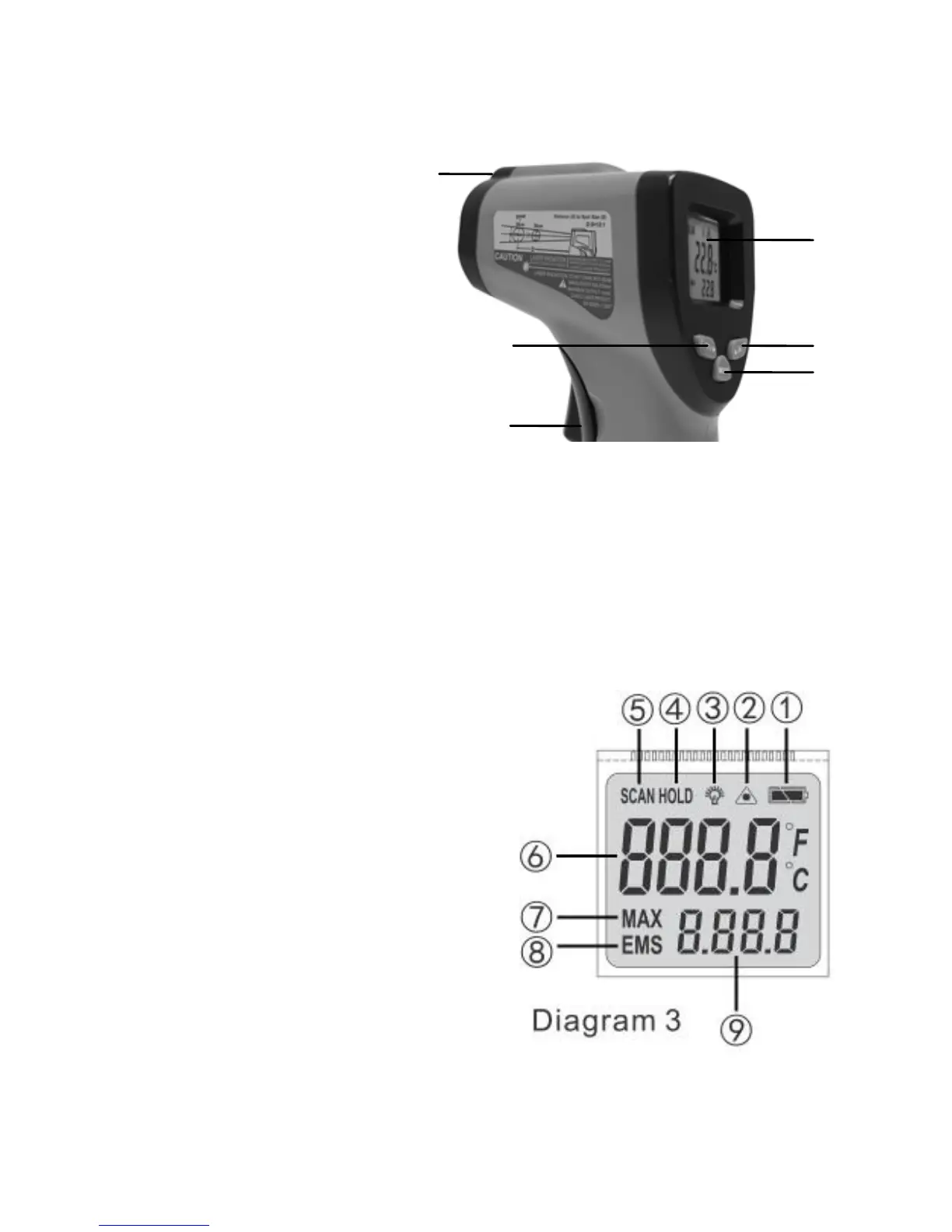 1) Press button 4 (℃/℉ button), switch the ℃/℉