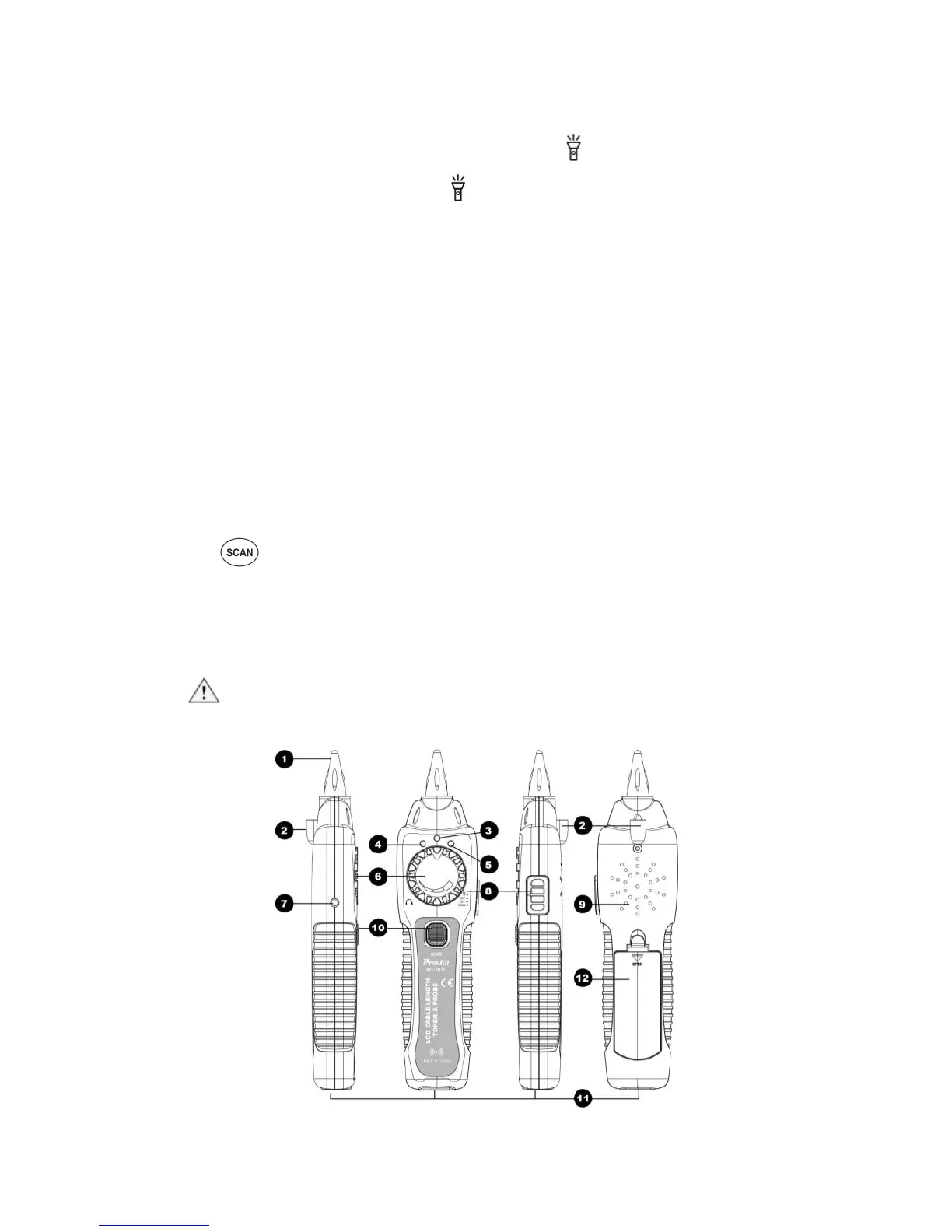喇叭:當尋線(SCAN)測試的功能啟動後,喇叭聲音越大,表示信號越強。