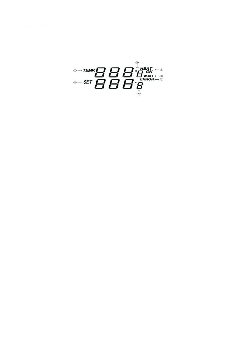 ②显示的是设定温度,通过按“UP”或“DOWN”键来改变设定值。轻压单下“UP”或“DOWN”