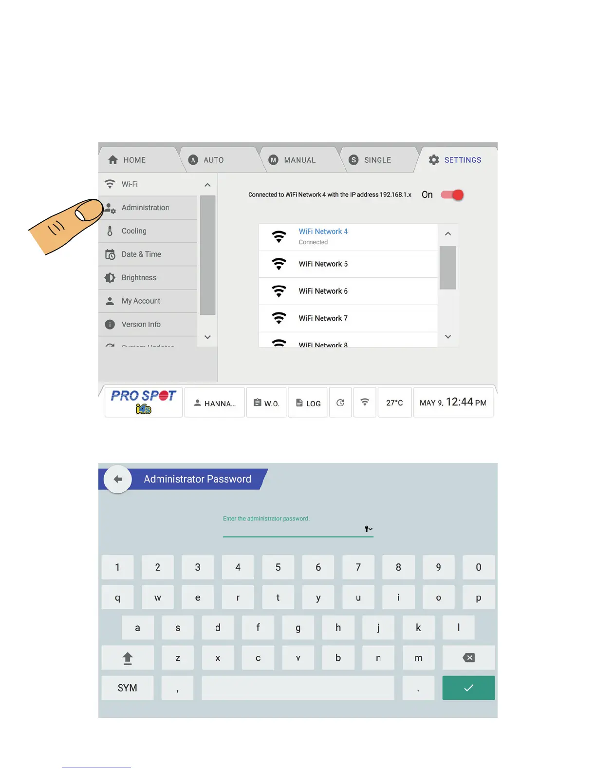4. Enter the password to get access to the Administration Menus. NOTE: Administration Password: asdf (lowercase)
