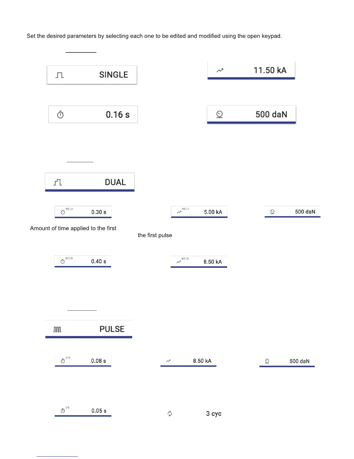 If you selected Pulse Weld, you will see the following options: