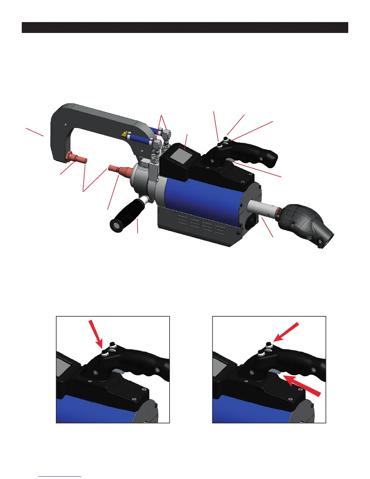 4. Press and hold both, the Weld Trigger AND top right (Menu Trigger) Button to weld.