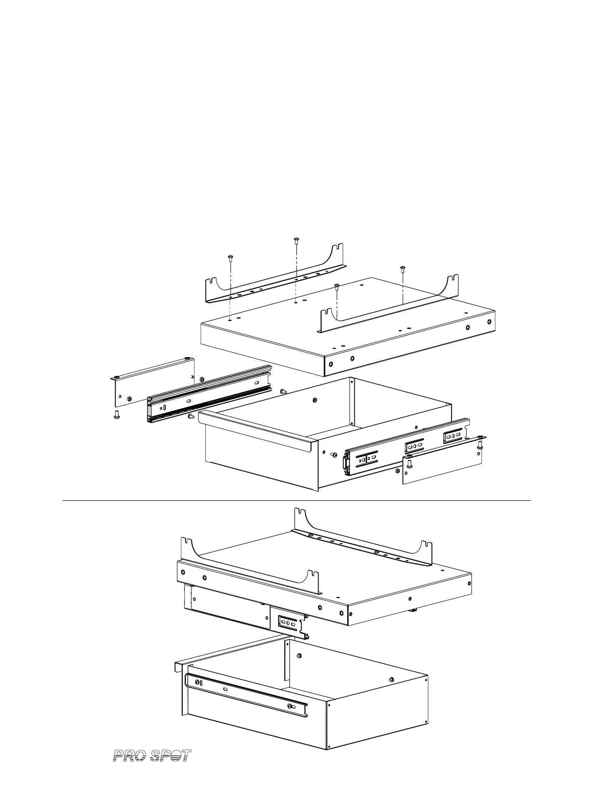 STEP 3C: ATTACH DRAWER BRACKETS TO THE TOP SHELF WITH M5 X 10 PHMS.