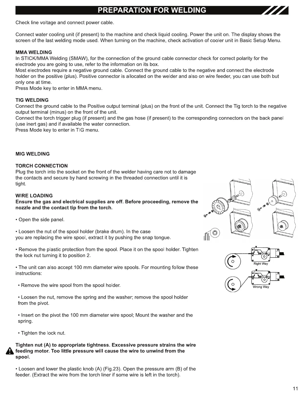 Pro Spot SP-5.3 - Preparation for Welding; MMA Welding Connection; TIG Welding Connection; MIG Welding Torch Connection