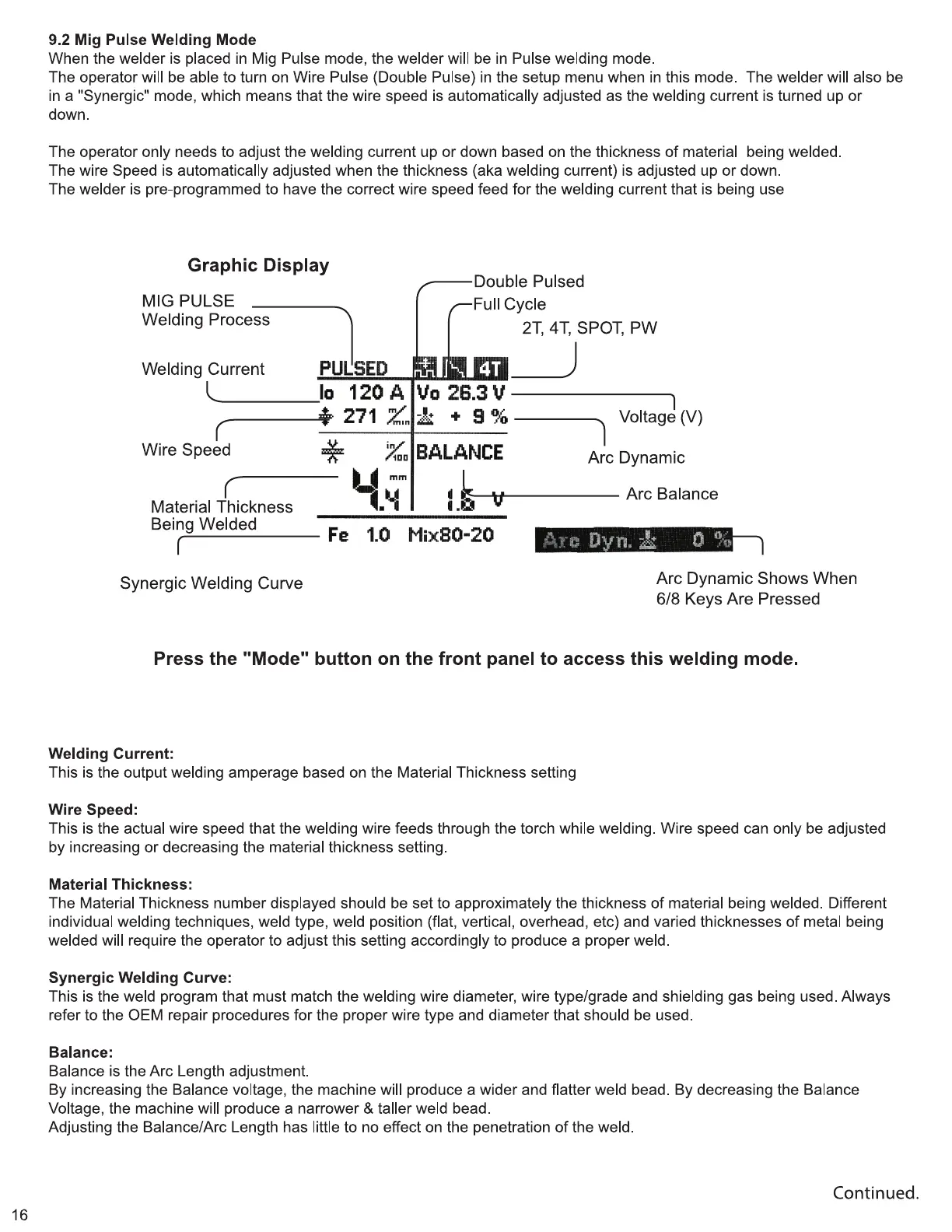 Pro Spot SP-5.3 - MIG Pulse Welding Mode; MIG Pulse Mode Parameters; Pulse Balance Adjustment