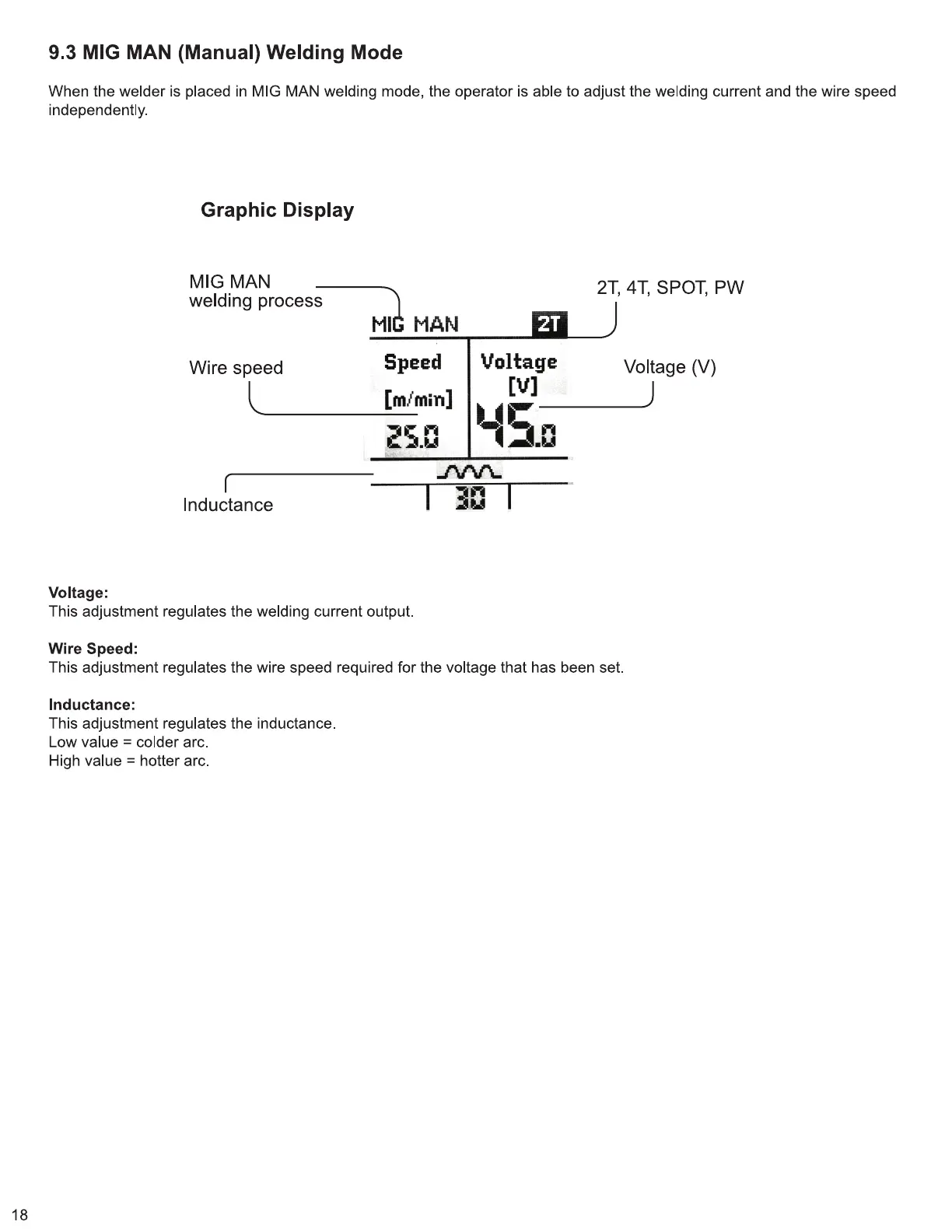 Pro Spot SP-5.3 - MIG MAN (Manual) Mode; MIG MAN Mode Parameters