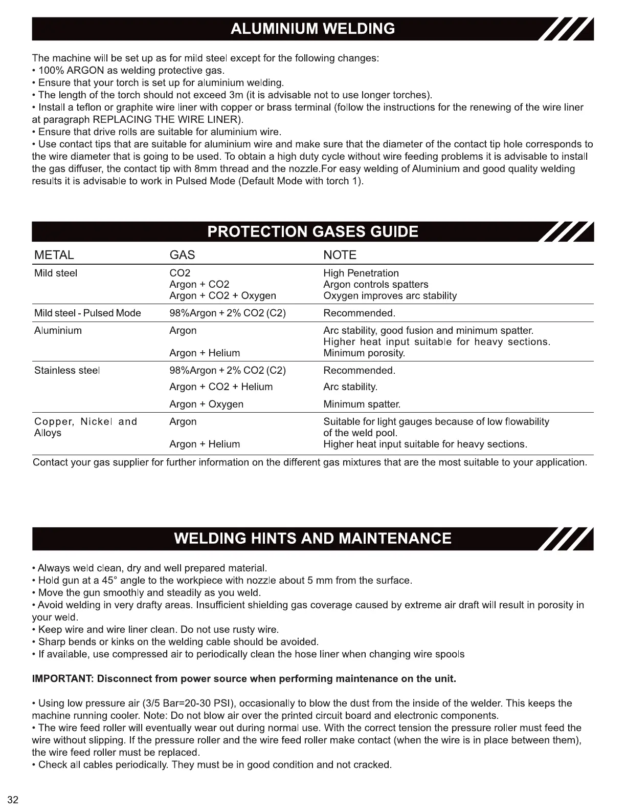 Pro Spot SP-5.3 - Specialized Welding and Maintenance; Aluminum Welding Setup; Protection Gases Guide; Welding Hints and Maintenance