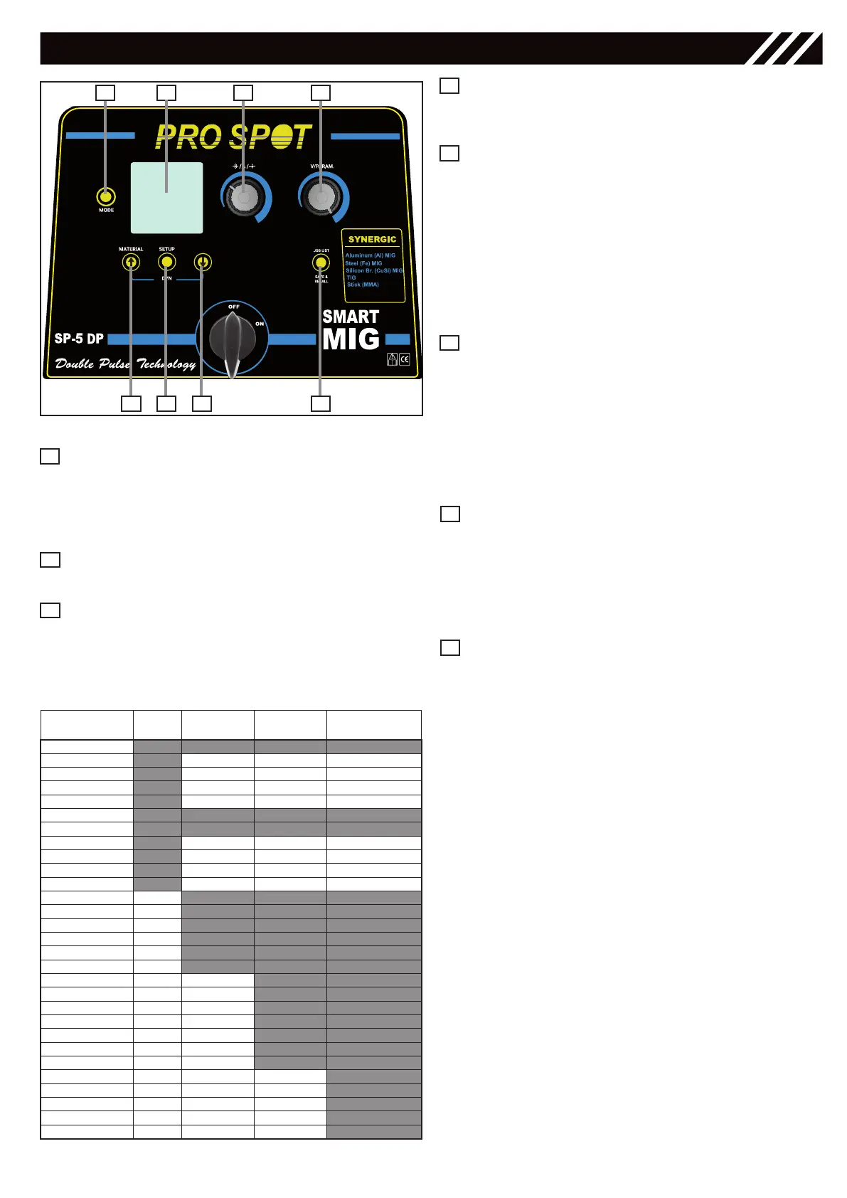 • for selecting the material in MIG SYN / MIG PUL-