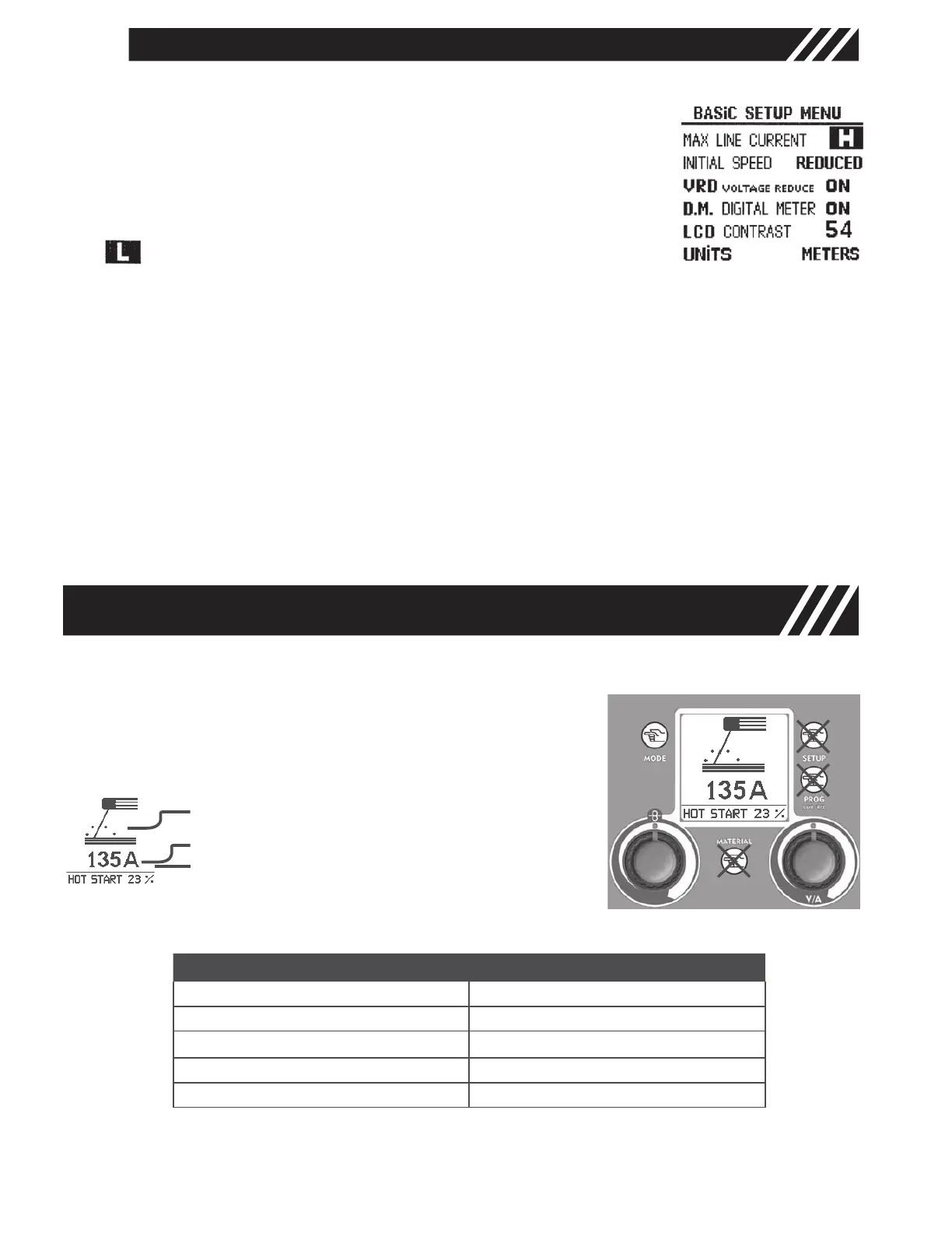 Nota: si el generador es configurado al mínimo (L), la corriente de salida máxima