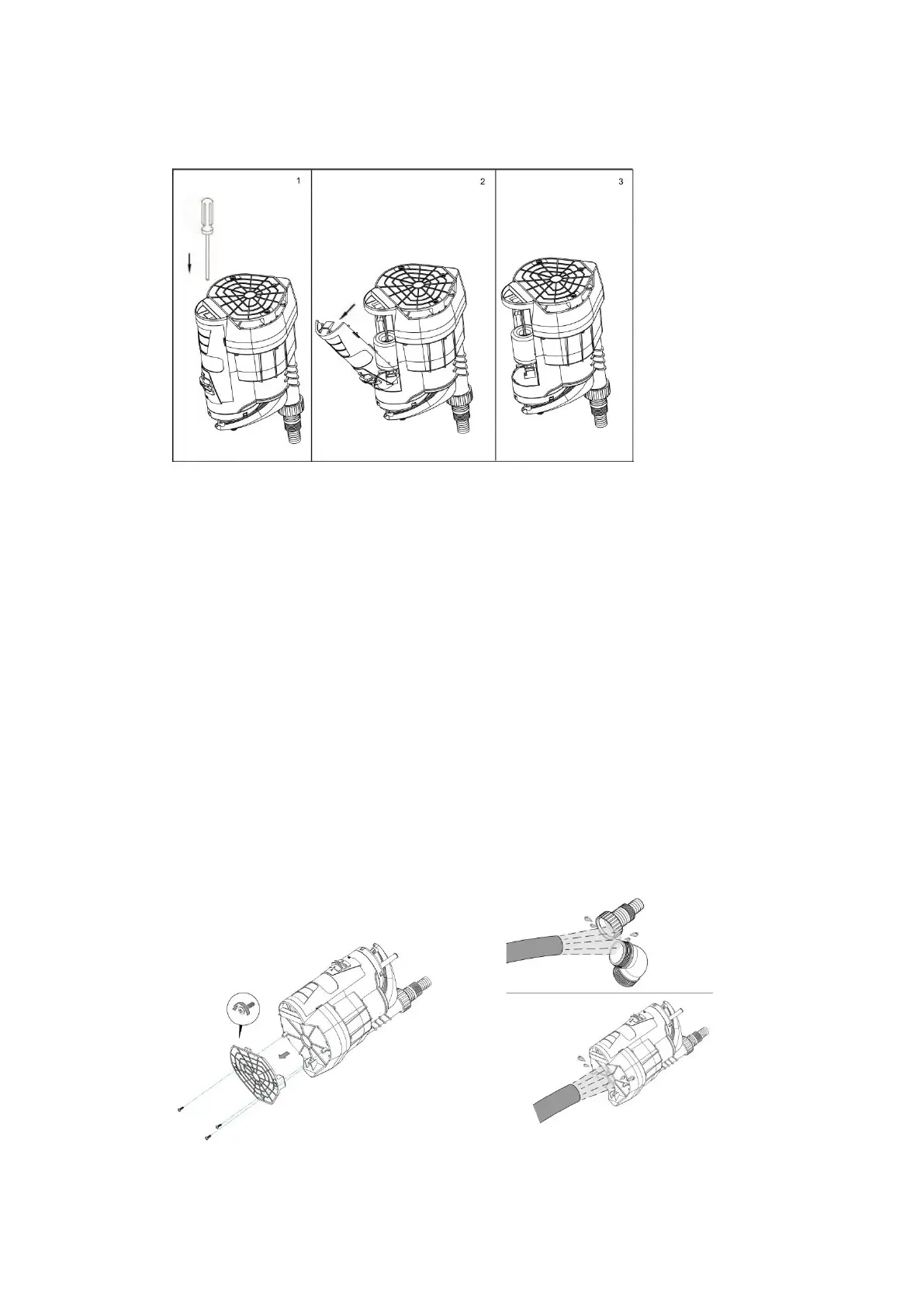 • Disassemble the cover panel at the bottom of the pump in order to access the air