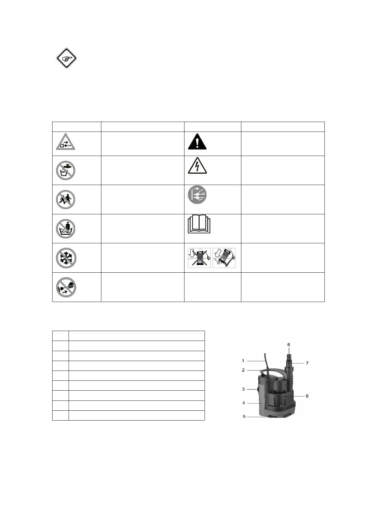 Staying in water prohibited Follow the manual