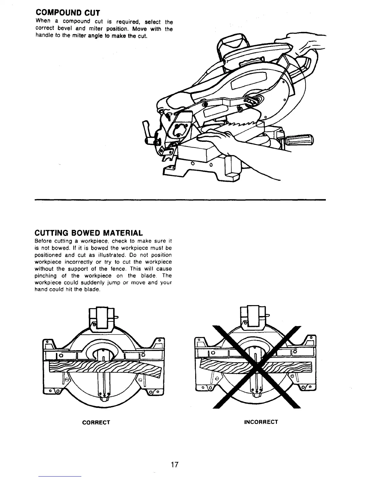 workpiece incorrectly or try to cut the workpiece