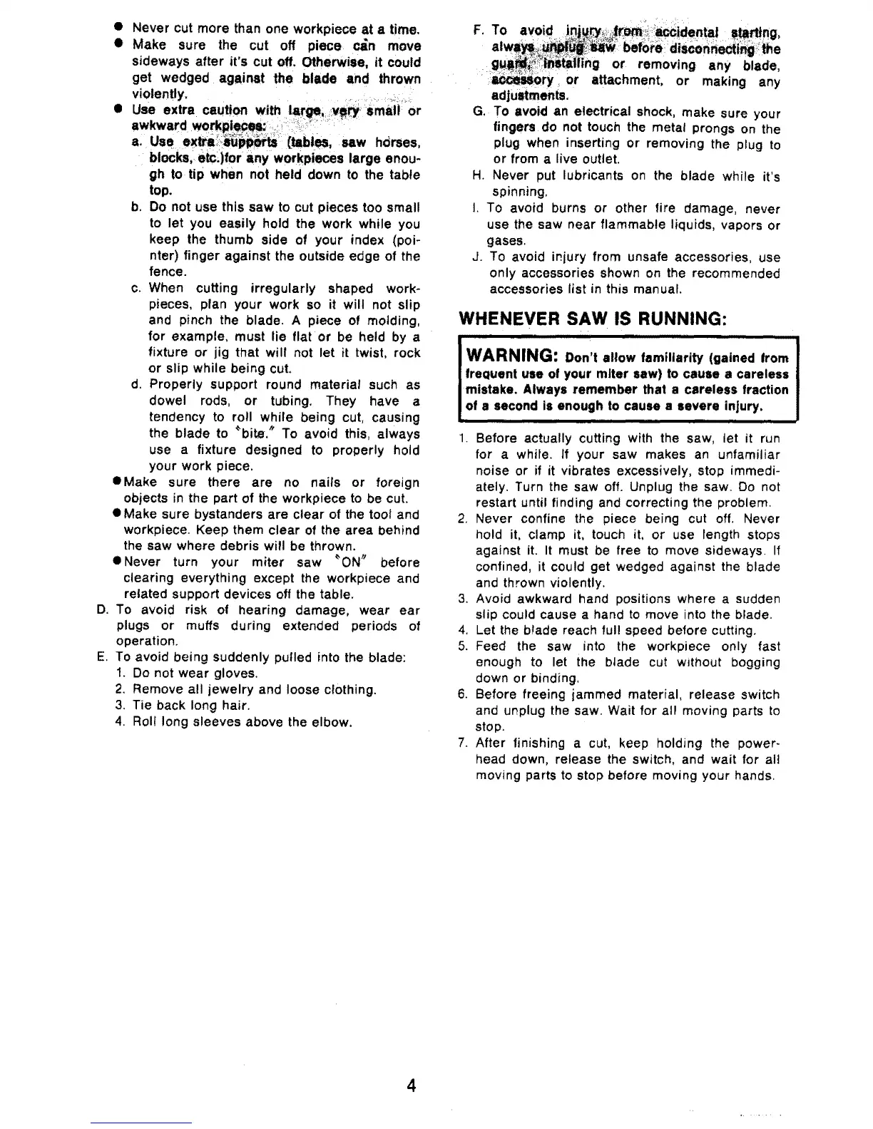 b. Do not use this saw to cut pieces too small