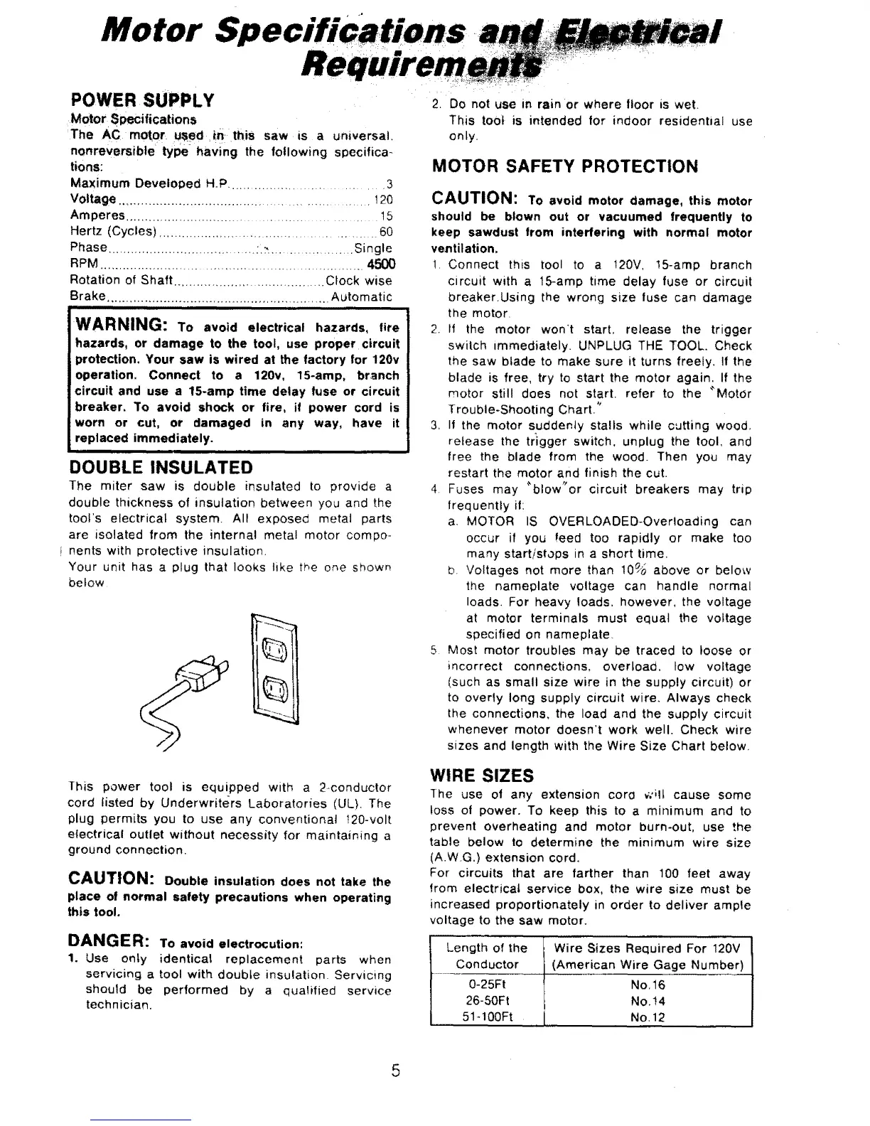 protection. Your saw is wired at the factory for 120v