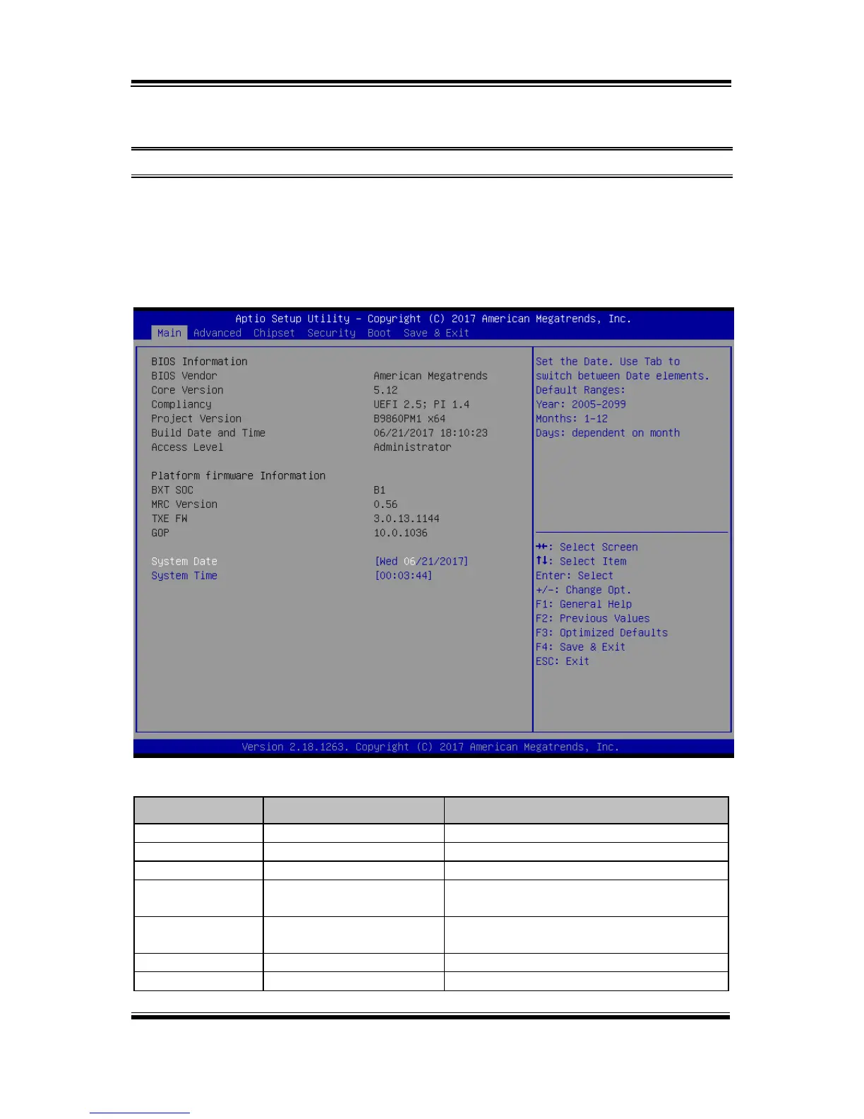 want in each item. This screen also displays the BIOS version (project) and BIOS