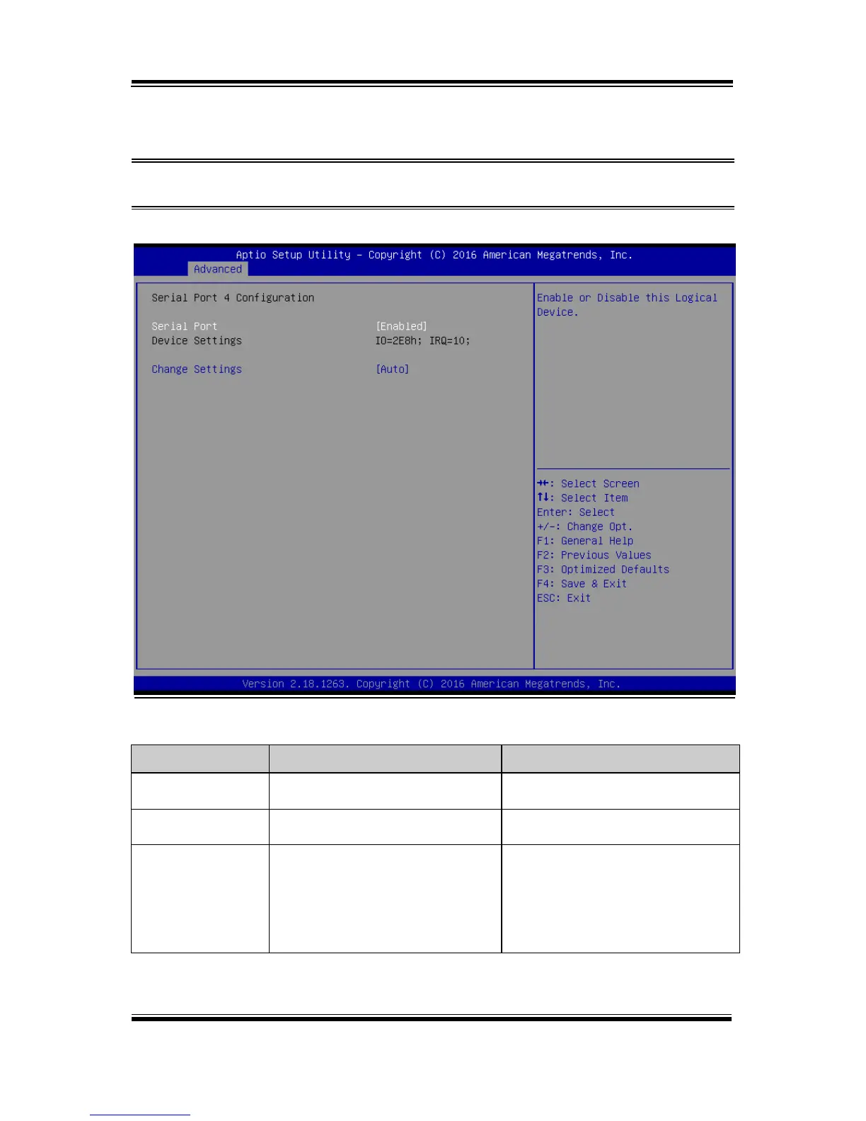 Menu Path Advanced > F81966 Super IO Configuration > Serial Port 4