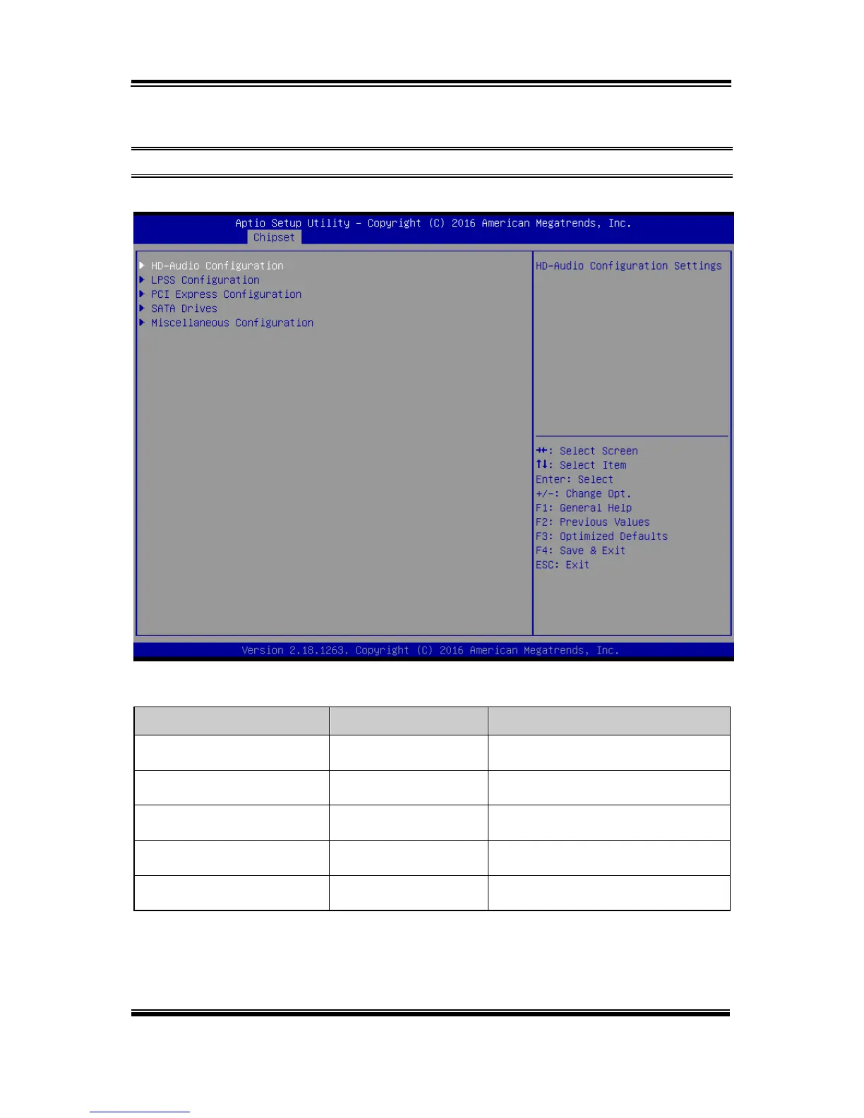 HD-Audio configuration settings.