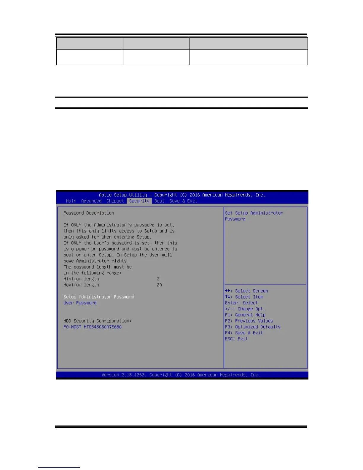 From the Security menu, you are allowed to create, change or clear the administrator