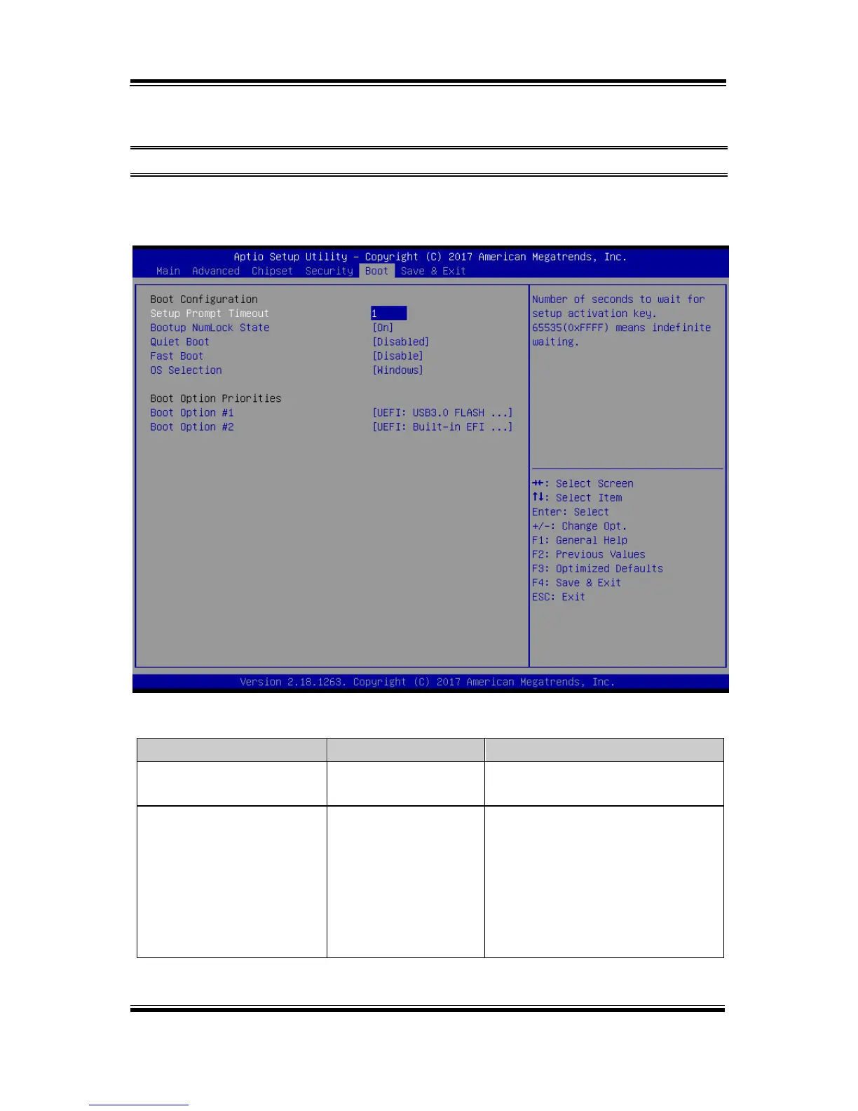 prompt timeout, enabling/disabling quiet boot and fast boot and changing the boot
