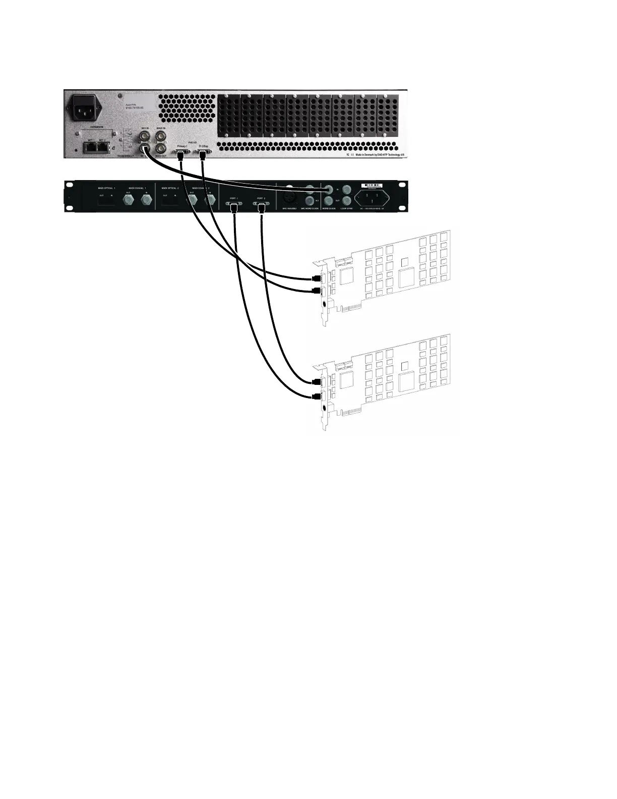 Figure 2. HDX 2 system: MTRX II connected to both DigiLink Mini ports on HDX card 1, MADI I/O connected to both DigiLink Mini ports on HDX