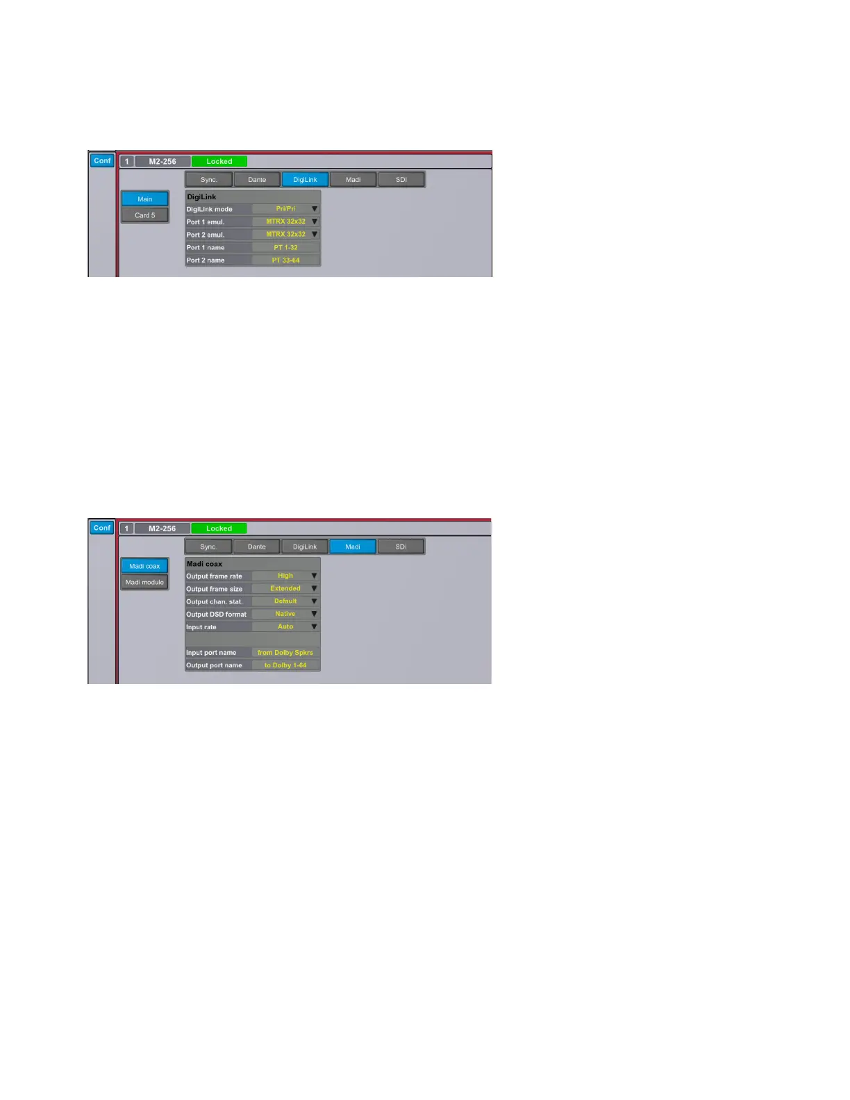 The built-in MADI Coax interface can be configured for compatibility with different implementations of MADI.