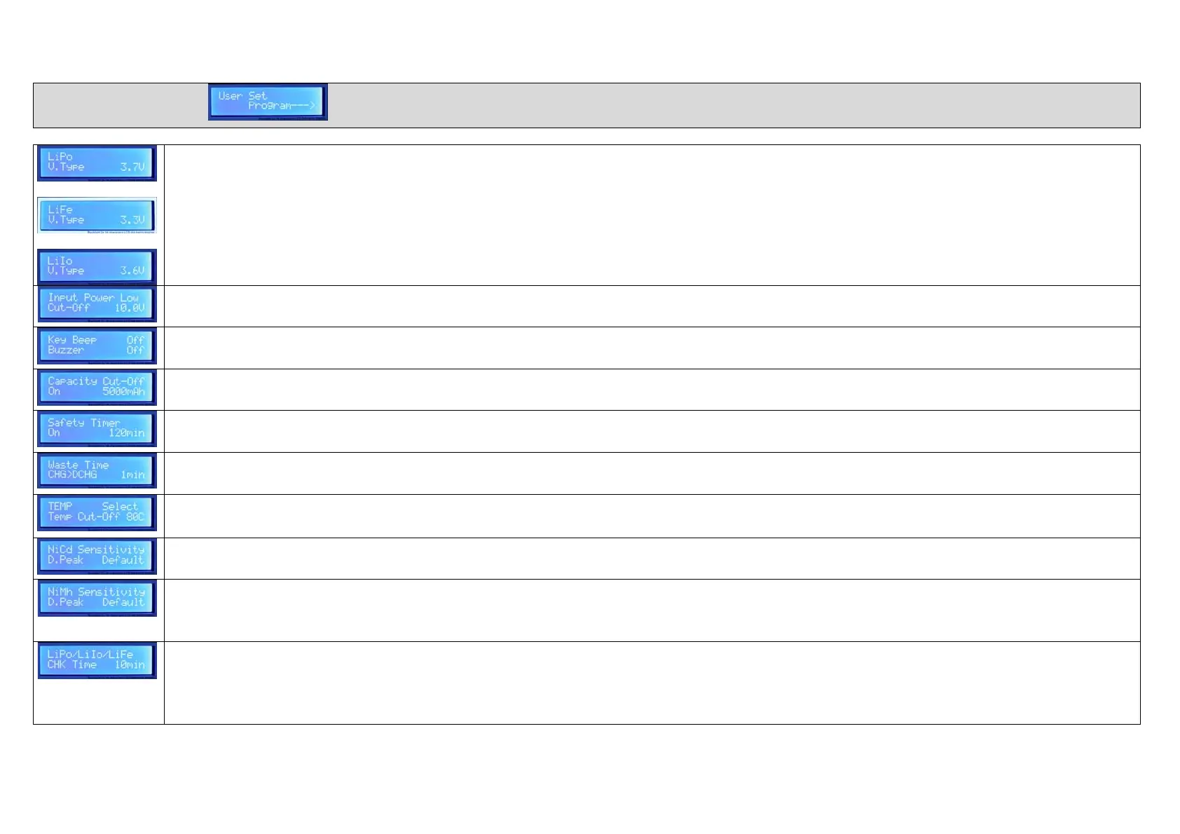 Thisscreenallowsyoutosetupamaximumcapacity(mAh)whichthechargerwillnotgoover,inanycase.Thisis