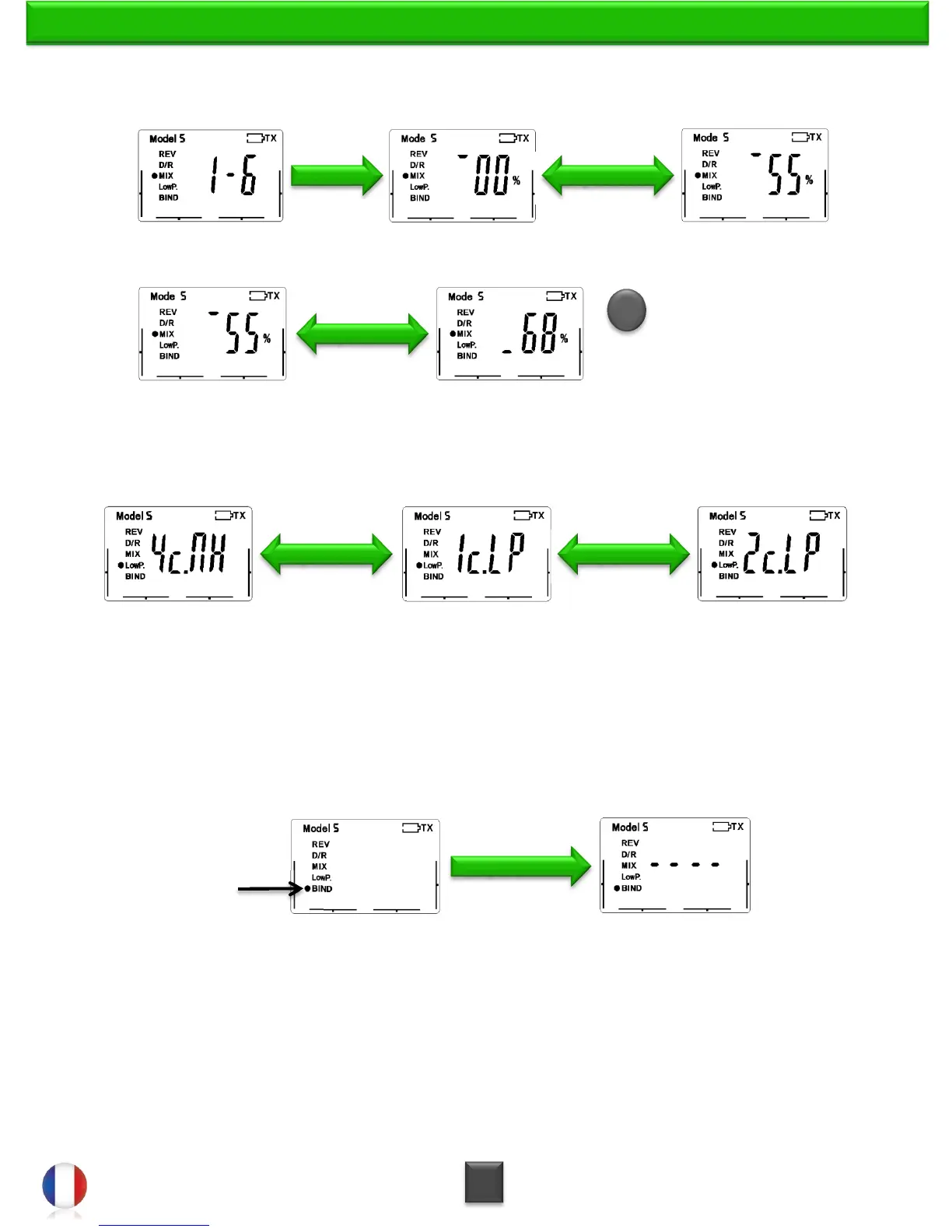 3.2/ Pressez la touche UP ou DOWN pour ajuster le taux de mixage Volet donne Ailerons vers le haut ou vers le