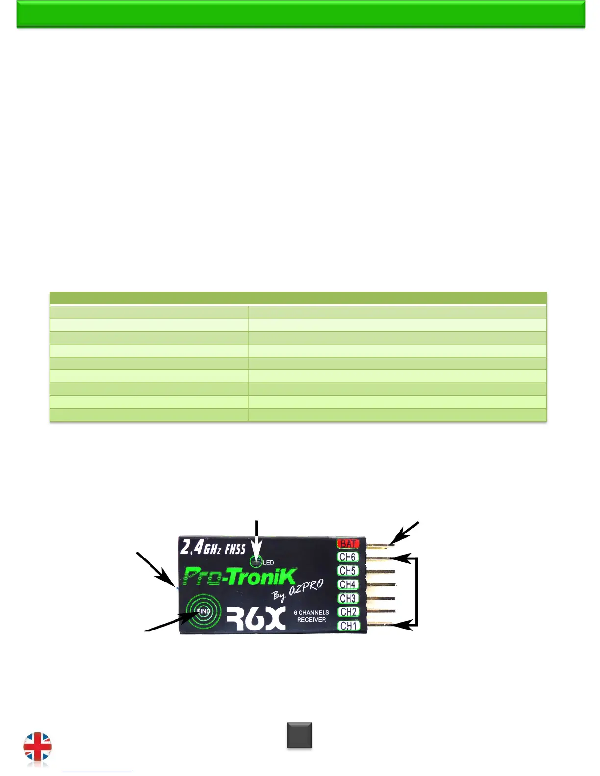 Receiving in the 2.4 GHz FHSS technology, providing a highly secure connection, optimum responsiveness, increased