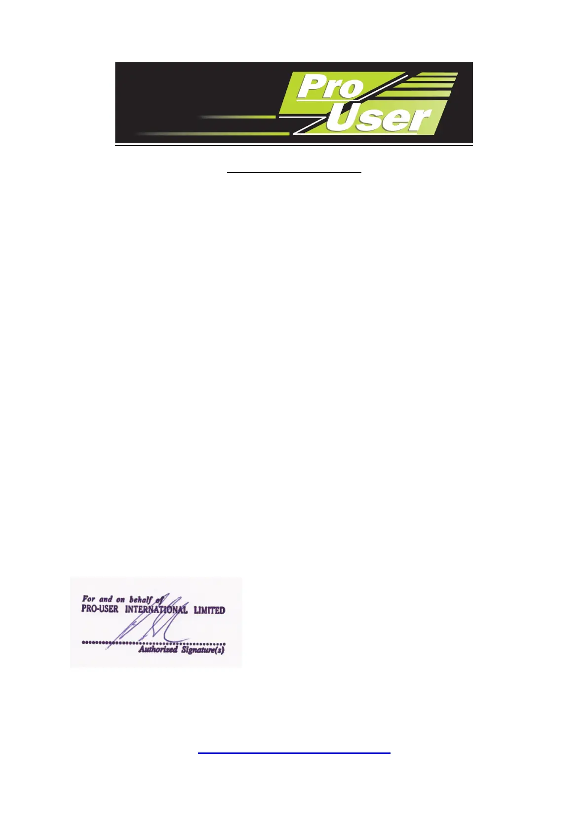 We, Pro User International Ltd, hereby declare that the equipment specified above conforms to the above