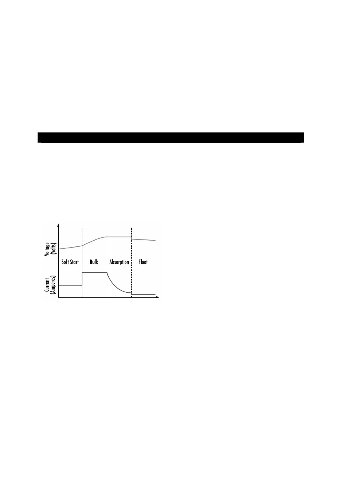 • Absorption: Voltooit het opladen tot praktisch 100% bij een constante spanning. De
