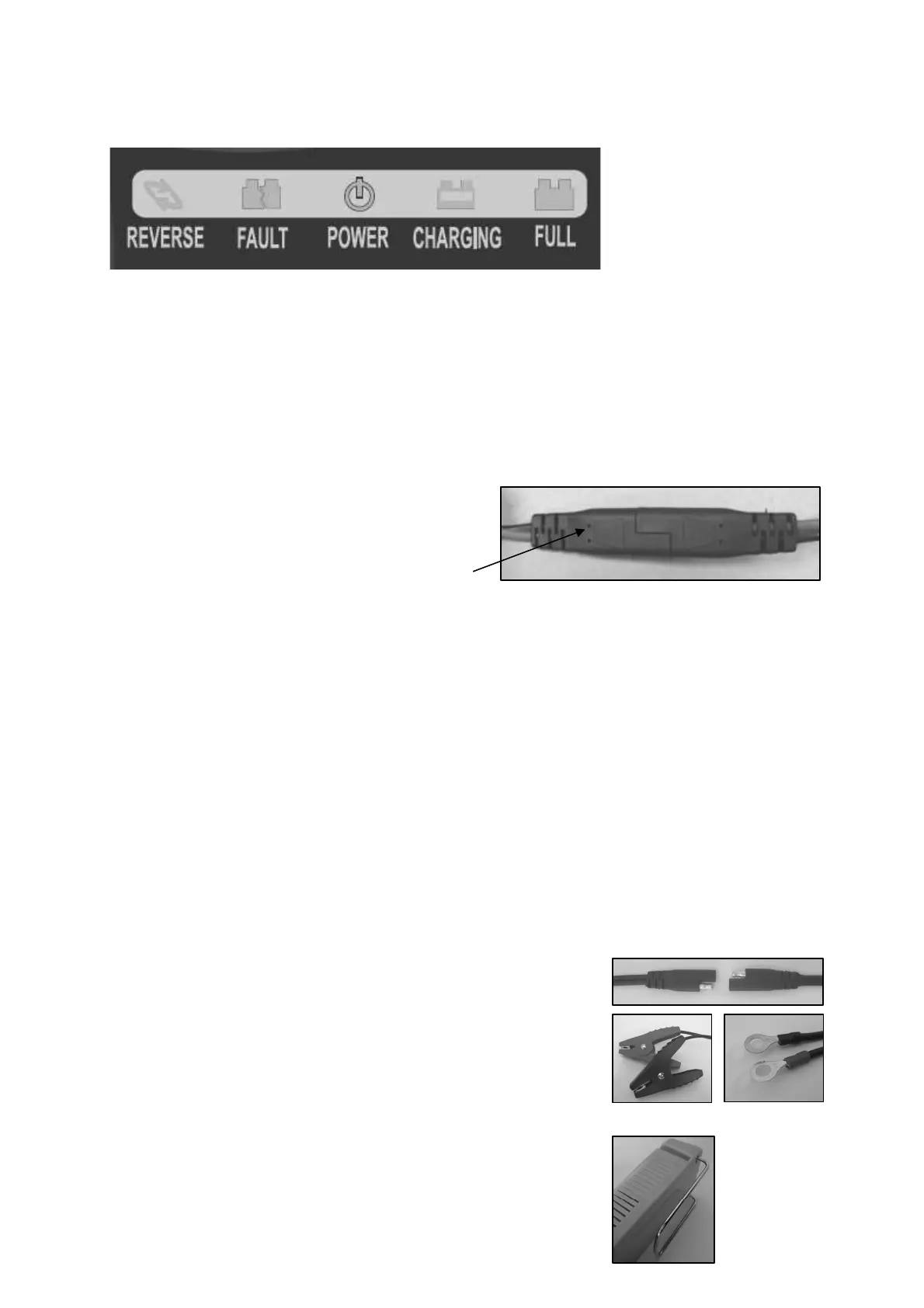 • REVERSE – RÖD LED – Batteriet är anslutet med omvänd polaritet.