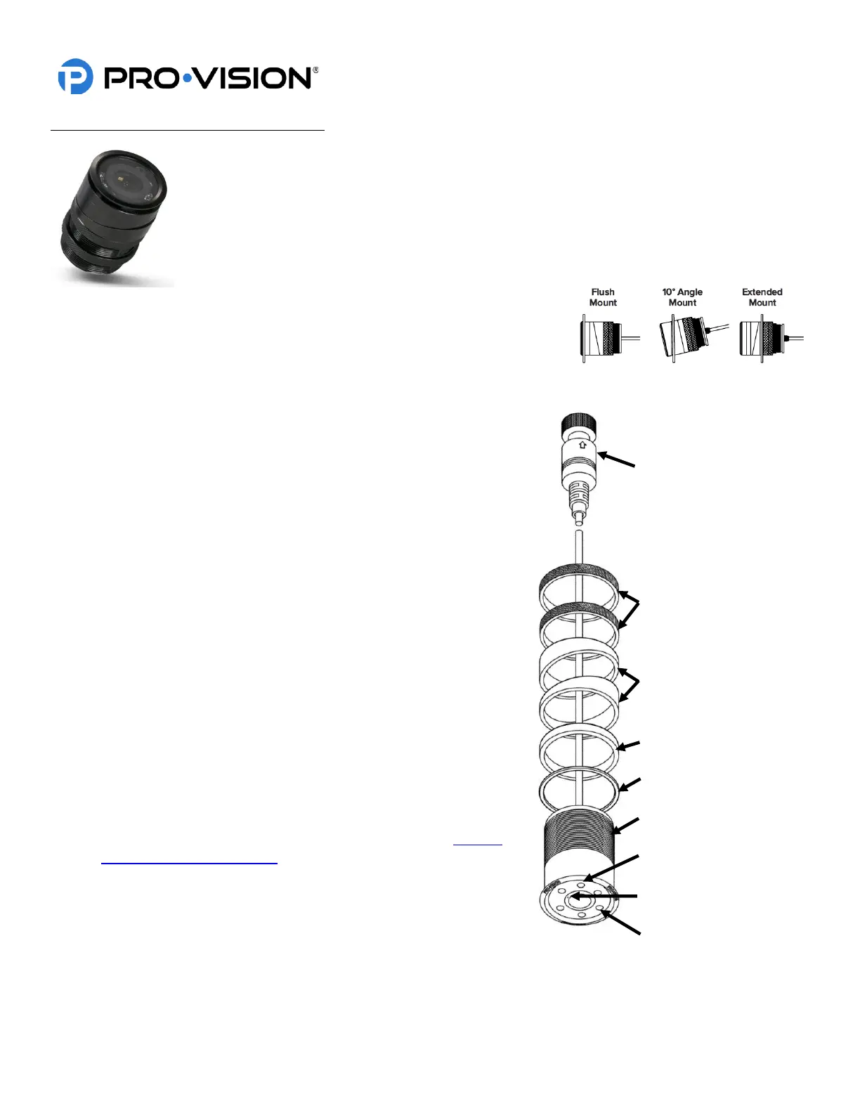 camera can also be tilted at a 10° angle by installing the angle rings on either side