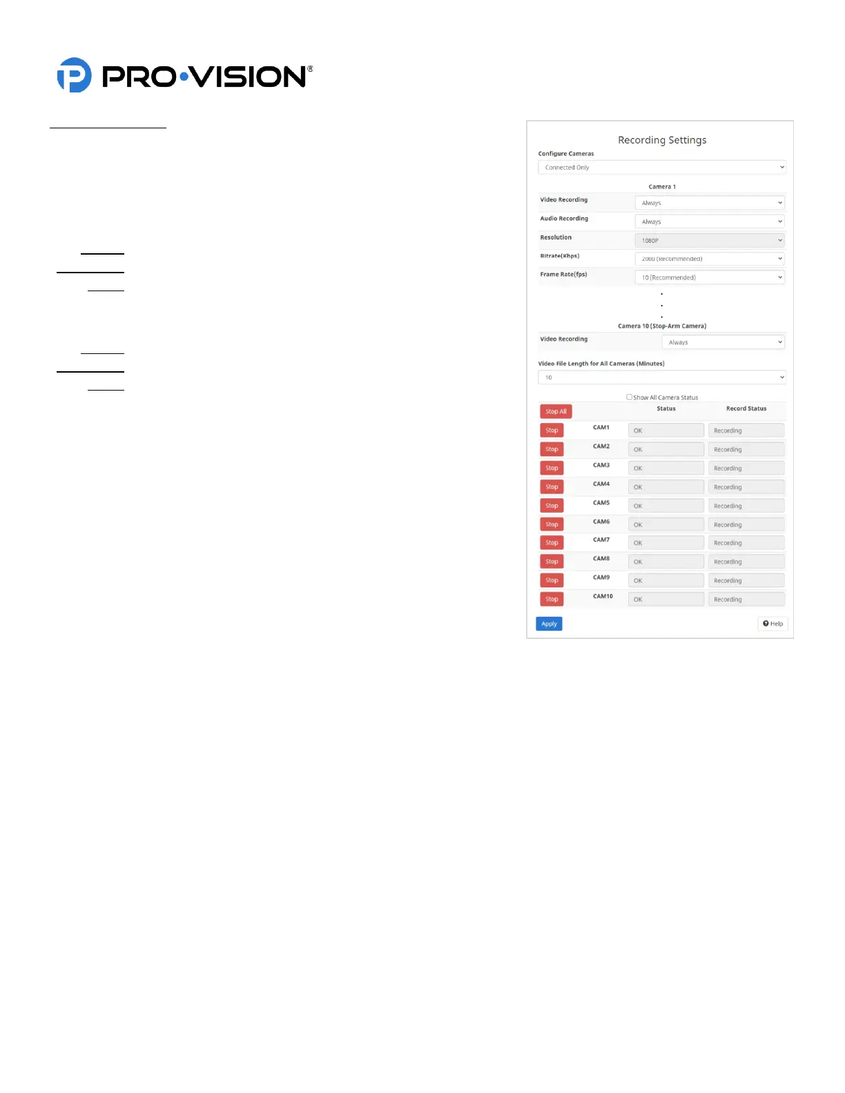 Once” to configure all cameras with the same settings.