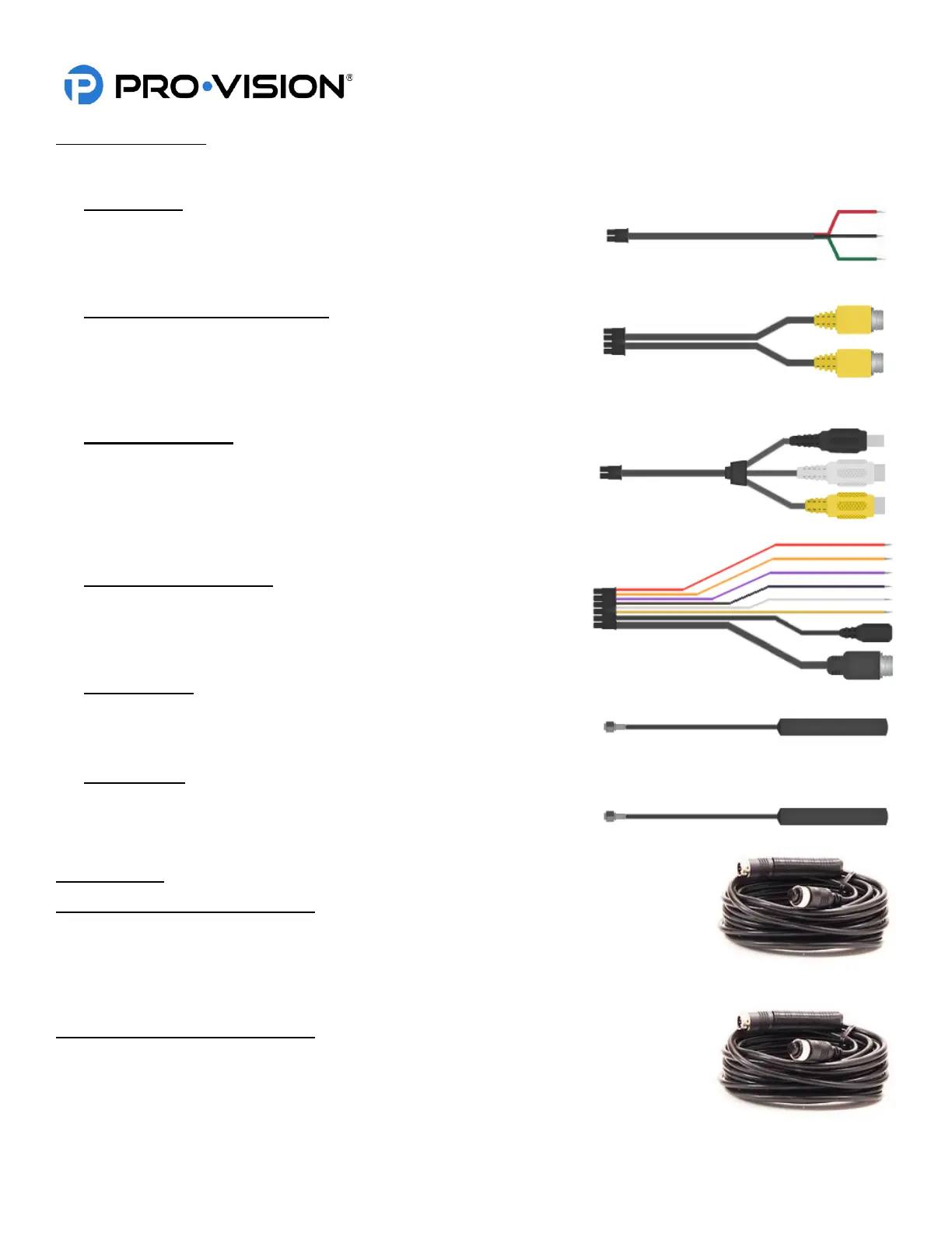 These cables are used to connect analog cameras 1-8 to the DVR unit.