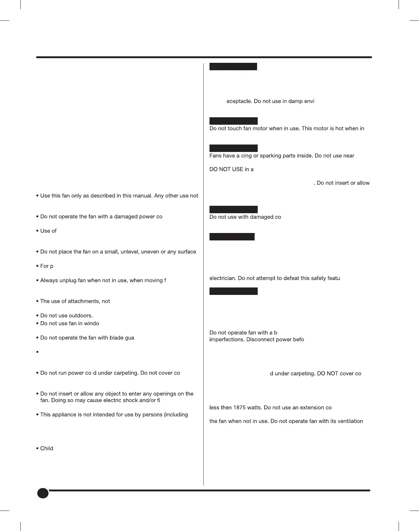 Read all the instructions before using this fan.