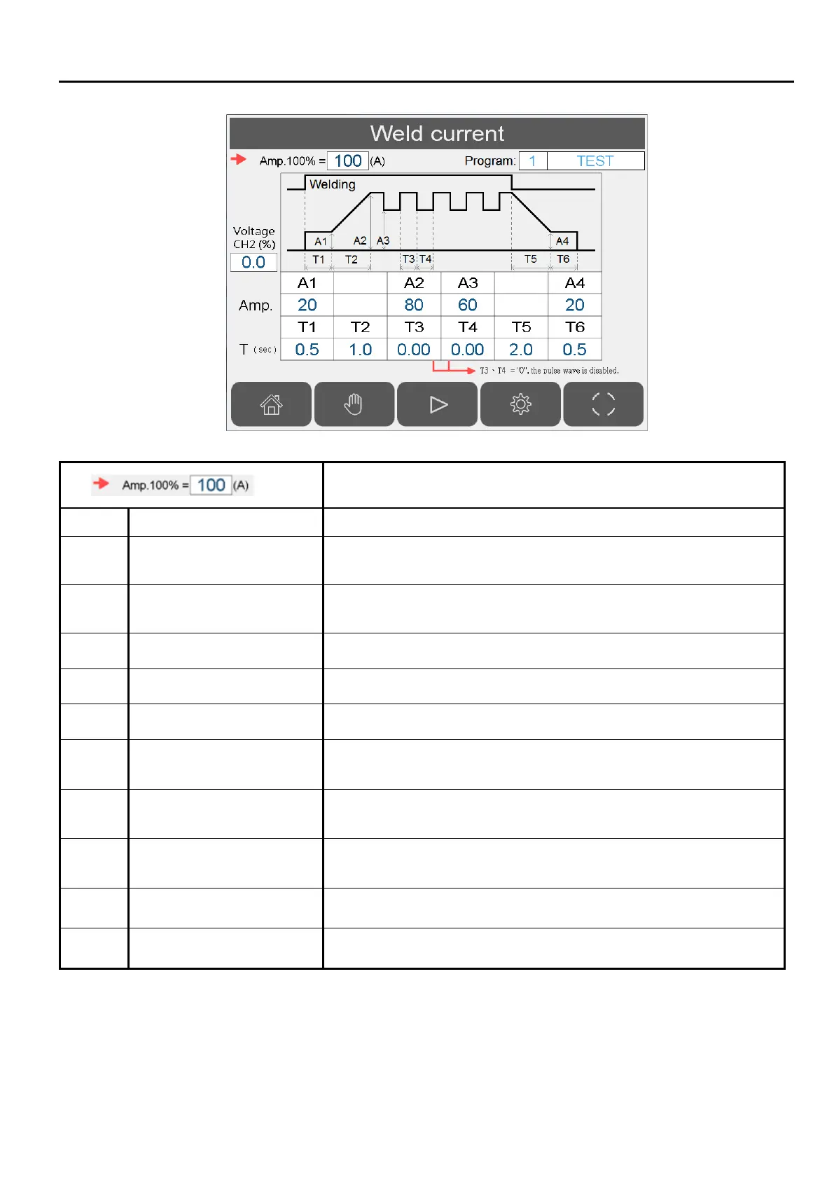 A4 Welding crater current(%) Welding ending current.