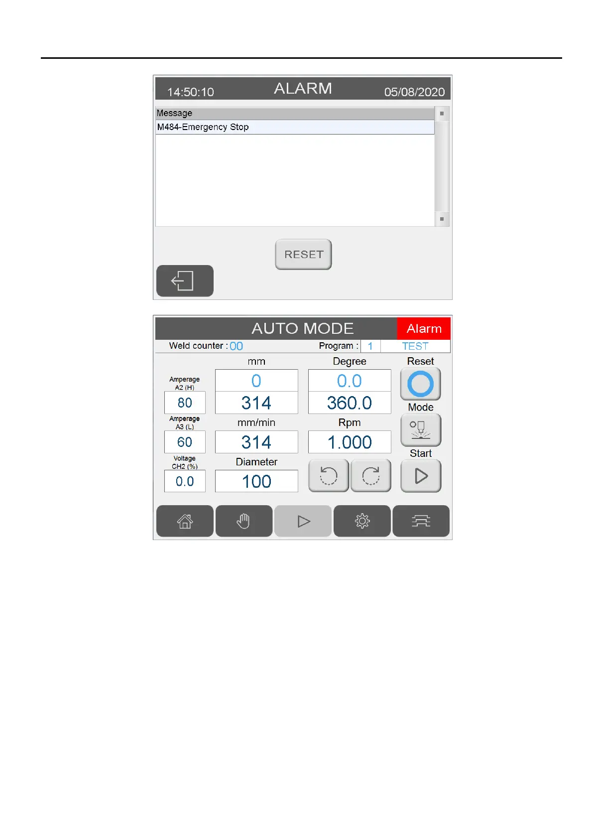 Pressing alarm window’s “close” icon without reset disables the alarm window. A red square would